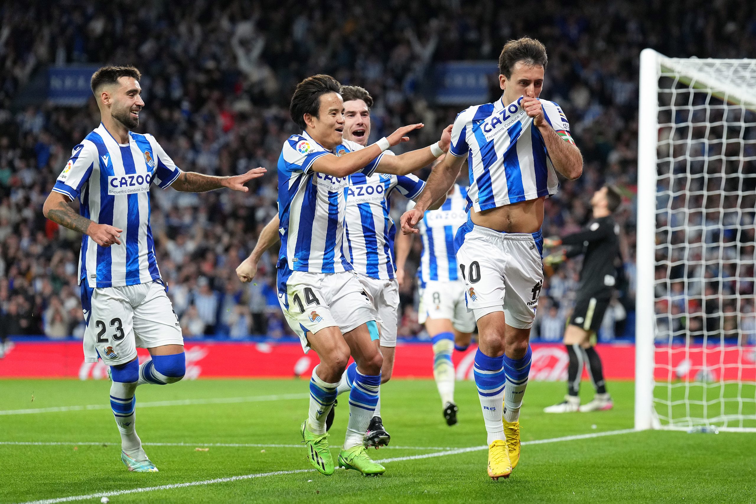 Mikel Oyarzabal tras casi un año sin marcar un gol y con pocos minutos a sus espaldas en esta temporada, se estrenaba en su especialidad, los penaltis, contra el máximo rival del conjunto entrenado por Imanol Alguacil. Lo tiró al estilo que le ha caracterizado todos estos años y no fallo en la gran cita. En la celebración besaría el escudo y rompería a llorar por todo el esfuerzo que conllevo su dura lesión.
