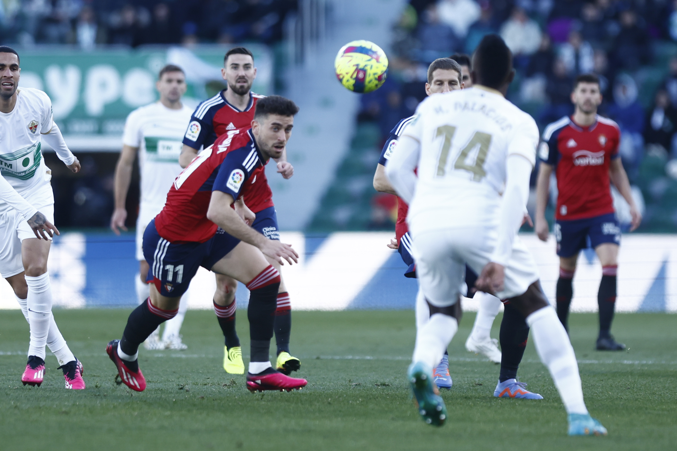 Tras el gol, volvieron los nervios al conjunto ilicitano, que solo rondaba el área rival con balones colgados o faltas lejanas. Mientras, Osasuna se empezaba a gustar y tocaba con mucha calidad y peligro.