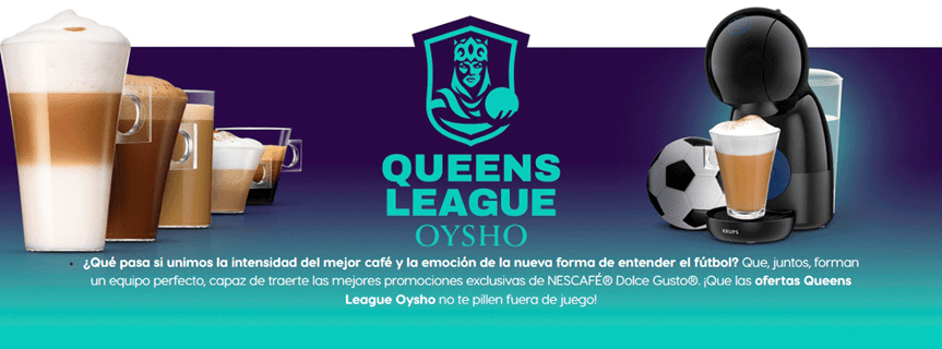 NESCAFÉ Dolce Gusto ha entrado en la Queens League Oysho, la liga de fútbol más viral y que, al igual que la Kings League InfoJobs, cuenta con la participación de 12 equipos presididos por exfutbolistas, streamers, youtubers y creadores de contenido. La marca se une así a la nueva manera de entender el fútbol patrocinando la liga de las reinas y colaborando con 1K FC, el equipo de Iker Casillas y la creadora de contenido Mayichi.