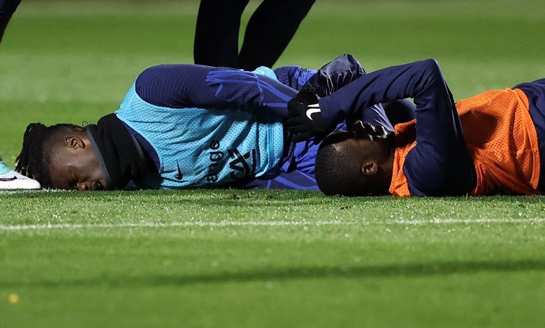 El centrocampista del Real Madrid da el susto en el entrenamiento de la selección francesa.
