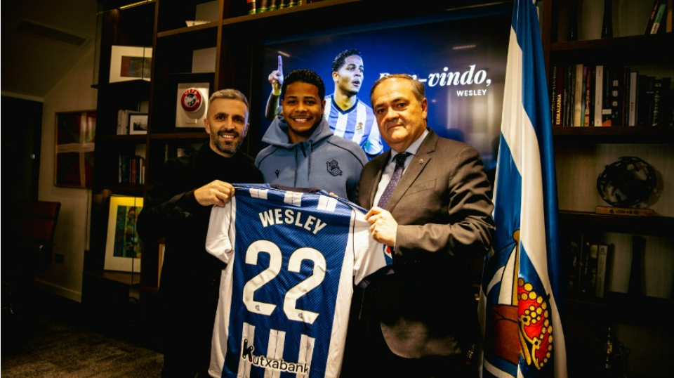 Wesley Gassova Ribeiro se ha convertido la primera incorporación de la Real Sociedad en este mercado invernal. El extremo aterrizó ayer en San Sebastián procedente del Al-Nassr y, tras una evaluación médica, se ha hecho oficial su cesión con opción de compra de 12 millones hasta final de temporada. Llevará el número 22 que Mikel Goti ha dejado libre tras su marcha al Córdoba.